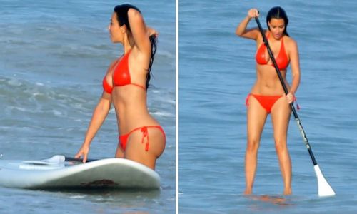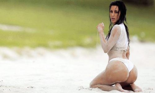 Luego del nacimiento de su hijo Saint, Kim Kardashian volvio a posar en traje de bano para presumir sus pronunciadas curvas