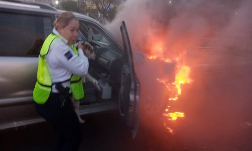 Rescata Transito a canino en incendio