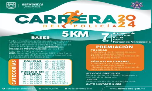 Convoca Policia de Hermosillo a participar en Tradicional Carrera