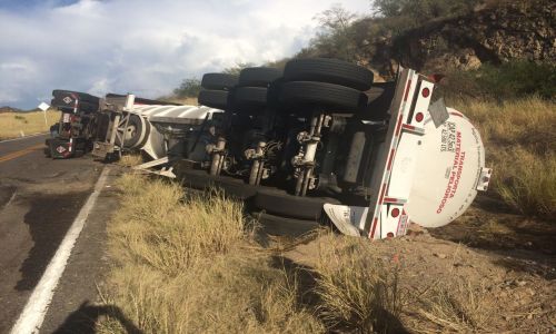 Tractocamion de la empresa Aguila Transportaciones perdio el control en una curva y vuelca