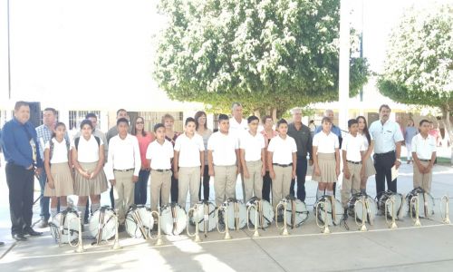 El legislador por el Distrito III entrega banda de guerra y equipo de refrigeracion a la Secundaria Tecnica 11 de Pitiquito