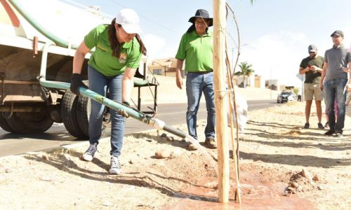 Siembra arboles sobre el bulevar Solidaridad
