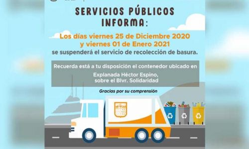 No habra recoleccion de basura el 25 de diciembre y primero de enero