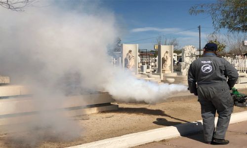 Fumigan panteones previo al Dia de las Madres