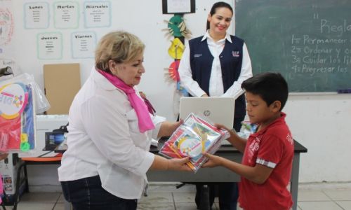 Entrega DIF utiles escolares a ninos del valle en SLRC