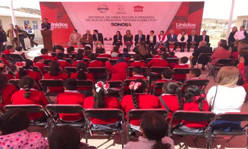 Inaugura Gobernadora escuela Nissan-Pueblitos en Nogales; la acompana Secretario General de la Seccion 54 del SNTE