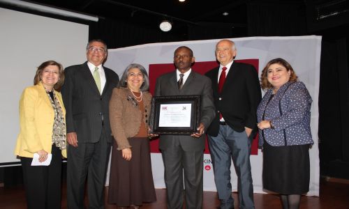 Oscar Amaya y Amelia Preciado fueron los ganadores del primer premio de 500 mil pesos y el segundo premio de Certificado de Educacion Superior, respectivamente.